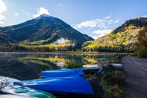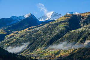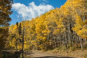 Donnerstag, 28.9. Fahrt nach Marble und über den Kebler Pass Wetter: vormittags meist sonnig, nachmittags bewölkt mit Regenschauern, 4 °C in Marble, 9 °C in Crested Butte, 19 °C in Delta Zum Frühstück gibt es diesmal wieder Hashbrowns mit Omelett und Toast. Nach dem Checkout um 7.15 Uhr fahren wir noch zum Safeway, wo wir uns Sandwiches zum Mitnehmen holen, und tanken. Wir fahren wieder Richtung Aspen, wo dunkle Wolken drohen, biegen aber bei Carbondale auf den West Elk Loop Scenic Byway ab. Richtung Westen winkt blauer Himmel. Schließlich biegen wir nach Marble ab. Im Tal hängen Nebelschwaden. Das sieht mit den gelben Espen und blauem Himmel toll aus. Die Straße endet am Beaver Lake, wo sich gerade der Morgennebel verzieht. Wir haben 9 Uhr. Wir hatten überlegt, eventuell die Fahrt zur Crystal Mill Mine zu machen oder die Strecke zu Fuß zu laufen. Aber dann hätten wir das wegen des Fotolichts am Nachmittag machen wollen und noch einen Tag mehr mit wirklich gutem Wetter haben müssen. Unserem Auto wollten wir die Strecke jedenfalls nicht zumuten. Wir fahren zurück zum Highway 133 und folgen diesem über den McClure Pass, von dem man auch tolle Ausblicke auf die umliegenden Berge hat. Hinter dem Paonia Reservoir biegen wir um 10 Uhr auf den Highway 12 nach Crested Butte ab. Die 30 Meilen lange Straße über den Kebler Pass ist eine breite Piste aus festem Lehm. Die schattigen Stellen sind noch feucht, aber auch PKWs sind heute hier unterwegs. Je höher wir kommen, umso mehr fährt man durch ganze Wälder von gelb leuchtenden Espen. Im Hintergrund sieht man zum Teil schneebedeckte Berge. Um 11.20 Uhr erreichen wir Crested Butte, ein sehr hübscher Ort mit vielen schönen alten Häusern. Wir stoppen auf einen Kaffee und laufen kurz durch die Hauptstraße. Hier oben haben wir 9 °C. Um 12 Uhr machen wir uns auf die Rückfahrt. Mittlerweile zieht es sich zu, wir machen noch eine Picknickpause mit Blick auf die Berge, und verzehren unsere am Morgen gekauften Sandwiches. Um 13.45 Uhr sind wir wieder auf der Teerstraße nach Delta. Aufgrund der dunklen Wolken im Süden und der schon fortgeschrittenen Uhrzeit fahren wir nicht mehr zum North Rim des Grand Canyon of the Gunnison. Die Südseite haben wir bereits 2008 besucht. In Delta halten wir noch bei Dairy Queen. Hier haben wir 19 °C. Von der Straße Richtung Grand Junction machen wir noch einen Abstecher auf die leicht steinige Dirt Road zum Escalante Canyon, 15 Meilen nördlich von Delta. Diese kann man 17 Meilen bis zu einer Furt fahren, aber wir kehren bereits nach 8 Meilen wieder um. Jetzt drohen im Westen dunkle Regenwolken. Diese holen uns dann auf dem Highway schließlich ein. Um 16.30 Uhr erreichen wir das Ramada Inn am Horizon Drive in der Nähe des Flughafens von Grand Junction. Wir beziehen für drei Nächte ein großes Zimmer mit zwei Queen-Betten, Kühlschrank, Mikrowelle, Kaffeemaschine, großem Flatscreen-Fernseher für $80 (nachträglich gebucht) bzw. $69 (mit Free Meeting Space Rabatt) pro Nacht. Die Wände in den Fluren und Zimmern scheinen alle neu gestrichen, doch der Teppich ist noch alt. Außerdem sind die Kopfkissen zu hart, ansonsten haben wir nichts zu meckern. Anschließend fahren wir noch zur Mesa Mall und gehen ein bisschen shoppen. Neben der Mall befindet sich ein Famous Dave's Bar-B-Que Restaurant, wo wir zum Abendessen einkehren. Ich nehme das Georgia slow-smoked Chopped Pork mit Mashed Potatoes und Green Beans und Volker die Spare Ribs mit Potato Salad und Coleslaw. Zusammen mit zwei Soft Drinks zahlen wir $35 plus Tip. Die Portionen insbesondere die Beilagen sind nicht sehr groß, aber das Fleisch ist sehr lecker. Gefahrene Meilen: 251 Übernachtung: Ramada Inn, Grand Junction ($80 + Tax)
