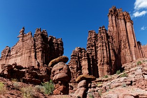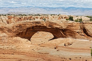 Freitag, 29.9. La Boca Arch, Covert Arch und Fisher Towers Wetter: zunächst Schleierwolken, ab mittags sonnig, 23 °C Zum Frühstück gibt es Rührei mit Toast, einen Joghurt und eine Banane. Man kann sich auch Waffeln backen. Beim Safeway lassen wir uns noch Sandwiches zum Mitnehmen machen. Diesen Tag Richtung Utah haben wir in die ursprüngliche Planung, in der es nur nach Colorado und New Mexico gehen sollte, eingeschoben, nachdem wir die beiden Übernachtungen am Anfang unserer Tour storniert hatten. Um 7.25 Uhr verlassen wir Grand Junction in leichtem Regen. Der ganze Himmel hängt voll dunkler Wolken. Auf der I-70 geht es nach Westen, und erst hinter der Grenze nach Utah wird das Wetter besser. Nach einer Stunde Fahrt erreichen wir den Exit 193 “Yellow Cat”. Wir folgen einer Beschreibung aus dem Internet und dem Navi und fahren nach Süden. Richtung Westen kann man den Arches National Park sehen. Die Dirt Roads sind bei trockenem Wetter normalerweise mit einem PKW befahrbar. Nach 45 Minuten parken wir oberhalb der Sandsteinformation, in der sich der La Boca Arch befindet. Es geht durch eine Lücke im Zaun keine 10 Minuten auf einer 4WD-Piste weiter, bis man sich direkt vor dem großen Felsbogen befindet. Dann laufen wir noch um die Sandsteinformation in nordöstlicher Richtung herum, und keine 10 Minuten später sieht man oben in den Felsen den Harold's Arch, zu dem man auch hinaufklettern kann. Allerdings mussten wir ihn trotz GPS-Koordinaten erst noch eine Weile suchen, und dann haben wir noch ein bisschen auf die Sonne gewartet, so dass wir erst nach gut einer Stunde wieder am Auto waren. Nun geht es ein Stück auf der Straße zurück, auf der wir gekommen waren, dann biegen wir Richtung Westen ab und nähern uns der Ostseite des Arches National Parks. Diese Straße ist zum Teil leicht sandig, und es gibt zwei Stellen, an denen man High Clearance benötigt. Auf dem Rückweg haben wir an einer Steinstufe einmal aufgesetzt. Wir parken schließlich vor einem Zaun mit einem Schild mit Informationen zu den Verhaltensregeln im Arches NP. Um 11 Uhr laufen wir los. Es geht noch ein Stück die Straße weiter, bis sie sich gabelt, wo wir den Abzweig nach rechts nehmen. Rechterhand des Wegs befindet sich eine Sandsteinklippe. Auf der Höhe von deren Ende schlägt man sich querfeldein Richtung Nordwesten. Man durchquert einen Wash und läuft dann möglichst auf Slickrockfelsen oder im Sand weiter, um nicht auf die empfindliche Vegetation zu treten. Nach 45 Minuten (3,2 Kilometern) stehen wir vor dem Lost Spring Canyon mit Blick auf den massigen Covert Arch in der Felswand gegenüber. Man könnte nun auch noch zum Arch hinabsteigen, aber das ist uns bei der abschüssigen Canyonwand doch etwas zu heikel. Nach einer kurzen Pause machen wir uns auf den Rückweg und sind um 12.45 Uhr wieder am Auto. Nun essen wir noch unsere Sandwiches und machen uns auf die Rückfahrt. Eine Stunde brauchen wir von hier, bis wir wieder auf der I-70 sind. Bis zur Abfahrt Cisco fahren wir zurück nach Osten. Nach weiteren 45 Minuten erreichen wir den Parkplatz an den Fisher Towers. Um kurz vor 15 Uhr starten wir auf dem 2,2 Meilen langen Trail, auf dem 670 Fuß an Höhe zu überwinden sind. Der Hin- und Rückweg ist mit 3-4 Stunden angegeben. Vor drei Jahren Mitte Juni haben wir die Wanderung nach der Hälfte mit Blick auf den Titan wegen 35 °C Hitze abgebrochen. Auch bei 23 °C und einer kühlen Brise wurde es uns heute schnell ziemlich warm auf dem Trail. Aber diesmal schaffen wir es bis zum Ende. Nach einer Stunde und 15 Minuten sind wir dort. Die Aussicht von der Felskante auf die Fisher Towers, hinab ins Castle Valley und auf den Onion Creek sind klasse. Die roten Felsen erstrahlen jetzt auch im besten Licht. Nach einer kurzen Pause laufen wir zurück und sind nach einer Stunde wieder am Auto. Um 17.30 Uhr machen wir uns auf die 1,5stündige Rückfahrt nach Grand Junction. Pünktlich zum Sonnenuntergang um 19 Uhr sind wir wieder am Hotel. Nach einer schnellen Dusche geht es ins nahegelegene Applebee`s zum Abendessen. Für mich gibt es Maccaroni-Cheese mit Bacon und Chicken und für Volker ein kleines Steak mit Mashed Potatoes und Brokkoli. Wir haben das Angebot für $25 für zwei inklusive einer Vorspeise genommen, wo wir uns für den Caesar Salad entschieden haben. Zusammen mit zwei Getränken zahlen wir $35 plus Trinkgeld. Gefahrene Meilen: 234 Übernachtung: Ramada Inn, Grand Junction ($69 mit Rabatt + Tax)