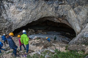in die Höhle hinab. Dort bekommen wir noch Lampen, wer keine