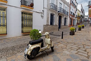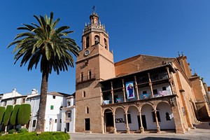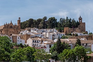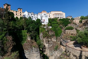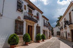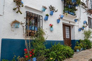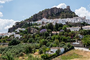 hübsches weißes Dorf hoch über der Küste. Auf dem Weg zur Stierkampfarena