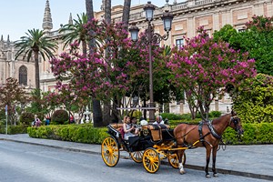 Pferdekutschen. Das Zentrum ist recht groß, so laufen wir noch eine Weile