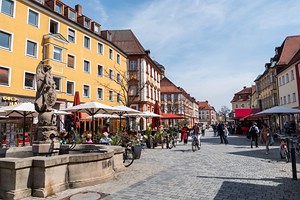 Bayreuth Gegen 10 Uhr verlassen wir Muggendorf und fahren über die Dörfer nach Creußen. Doch das Städtchen ist nicht so interessant. Wir fahren weiter Richtung Bayreuth und besuchen dort die Eremitage. Eine gute halbe Stunde laufen wir durch die Parkanlage, und um 12.30 Uhr können wir bereits im H4 Hotel Residenzschloss einchecken. Gegen 13 Uhr beginnen wir unseren Stadtrundgang. Vom Hotel sind es 5 Minuten zu Fuß bis in die Fußgängerzone. Dort essen wir an einer Brauerei in der Sonne zu Mittag: Nürnberger Bratwürstchen bzw. Schnitzel. Dann laufen wir die Sehenswürdigkeiten im Zentrum ab einschließlich des Hofgartens. Insgesamt ist die Altstadt recht übersichtlich. Um 15 Uhr sind wir soweit durch und finden schließlich einen freien Platz im Eiscafé. Zurück im Hotel essen wir nur noch eine Kleinigkeit zum Abendessen aus dem Supermarkt um die Ecke.