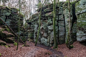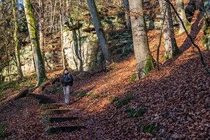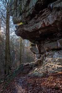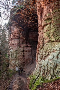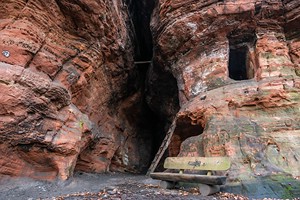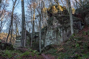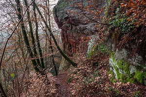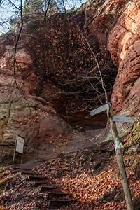 Geschichte, Buntsandsteinfelsen, Höhlen und einer Burgruine. Der