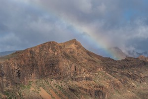 Als wir heute auf dem Weg zum Frühstücksbüffet zu den Bergen hochschauen, haben wir wolkenfreies Wetter! Auf der GC-220 fahren wir über Artenara in die Berge. Nach einer Stunde und 10 Minuten sind wir am Startpunkt unserer heutigen Wanderung ab der Degollada del Sargento auf 1160 Metern. Um 10 Uhr laufen wir los. Die Aussichten sind grandios – im Westen ragt der Teide auf Teneriffa in den Himmel, und auf der linken Seite überblicken wir das zentrale Bergland bei Artenara und Tejeda mit dem Pico de las Nieves, dem Roque Nublo und dem Roque Bentayga, und auch in den Grand Canyon Gran Canarias kann man hineinschauen. Nach zwei Stunden haben wir den Aussichtspunkt mit tollem Blick auf Aldea de San Nicholas erreicht. Auf dem Rückweg machen wir noch zwei kurze Abstecher zum Gipfel des Altavista bzw. Risco Alto. Vom Risco Alto hat man den besten Rundumblick! Nach insgesamt vier Stunden und 10,5 Kilometern mit 450 Höhenmetern sind wir wieder am Auto. Während wir auf dem Hinweg klares Wetter hatten, zogen ab dem Mittag langsam Wolken auf. Eine Kaffeepause in Altenara lassen wir ausfallen, weil es nun bedeckt bei 16 °C ist. Wir fahren also wieder auf dem gleichen Weg zurück zum Hotel. Auch dort scheint leider nicht mehr lange die Sonne. Trotzdem gehe ich noch mal in den Pool, und der hat diesmal eine sehr angenehme Temperatur. Auch dem lauwarmen Whirlpool statte ich noch einen Besuch ab. Dann fängt es plötzlich an zu regnen!