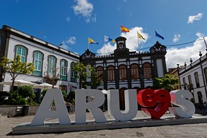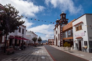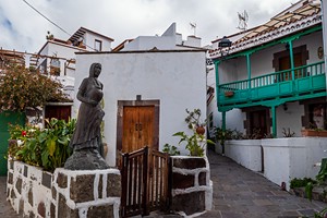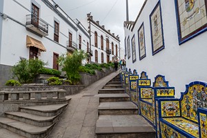 Danach fahren wir nach Arucas, wo wir kostenlos auf einem großen Parkplatz neben der Kirche parken können. Von dort laufen wir bis zum Parque de Las Flores und kehren noch in einem Café ein. Die zwischen 1909 und 1977 im neugotischen Stil erbaute, einer Kathedrale ähnelnden Kirche Parroquia de San Juan Bautista de Arucas hat ab dem Mittag bis zum späteren Nachmittag leider geschlossen, und auch die Zufahrt zum Aussichtsberg über der Stadt ist gesperrt. Wir fahren noch nach Teror ein Stück weiter in die Berge. Um 15 Uhr sind wir dort, auch hier gibt es einen großen kostenlosen Parkplatz. Der historische Ortskern mit den vielen balkongeschmückten Häusern ist sehr hübsch. Leider ist die Wallfahrts-Basilika noch bis 16 Uhr geschlossen, so dass wir noch eine Weile warten müssen, bis wir reinkönnen. 40 Minuten dauert die Rückfahrt ins Hotel, gegen 17 Uhr sind wir dort. Auch hier scheint noch die Sonne.