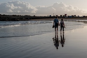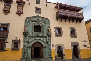 Heute Vormittag regnet es. Gegen 10 Uhr fahren wir nach Las Palmas, nach gut 35 Minuten parken wir unweit der Kathedrale Santa Ana. Als wir dort sind, kommt die Sonne raus! Wir laufen durch die Altstadt bis zur Ermita San Telmo und wieder zurück. Während eines Regenschauers kehren wir auf ein paar Churros mit heißer Schokolade ein. Nach gut zwei Stunden in der Stadt zahlen wir 4,65 Euro am Parkplatz und fahren weiter Richtung Isleta am Ende der Landzunge. Wir parken in einer Straße in der Nähe des Strandes Confital und starten gegen 13.30 Uhr eine Wanderung auf der Halbinsel, erst am Strand entlang und dann hoch zum Aussichtspunkt Mirador de la Cruz. Von dort oben haben wir einen tollen Blick auf Las Palmas zu unseren Füßen. Immer noch scheint hier die Sonne, während die Inselberge in den Wolken liegen.