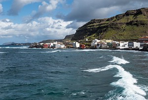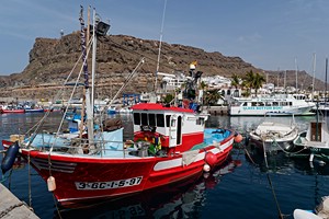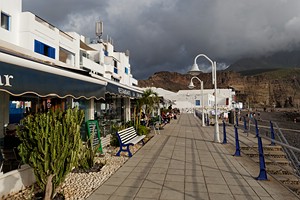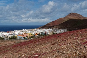 Heute ist Hotelwechsel angesagt. Nach dem Frühstück packen wir unsere Sachen und checken aus. Gegen 10 Uhr fahren wir los. Das Wetter ist heute sehr diesig mit schlechter Fernsicht. Wir fahren nach Maspalomas und laufen auf der Promenade entlang zum Aussichtspunkt über die Dünenlandschaft vor den Bettenburgen. Danach fahren wir nach Puerto de Mogán und laufen duch das nette Städtchen. Auch hier ist recht viel los. Wir setzen uns für ein Getränk auf die Aussichtsterrasse des Restaurants El Faro de Mogán an der Hafeneinfahrt. Gegen 13.30 Uhr fahren wir weiter. Wir halten kurz an der restaurierten Windmühle bei Mogán und dann an den bunten Felsen Los Azulejos. Schließlich erreichen wir Playa de la Aldea bei Aldea de San Nicolás. Dort trinken wir einen Kaffee zu einem Stück Kuchen. Danach geht es noch hoch zum Aussichtspunkt Mirador de Balcón mit spektakulärem Blick über die steil zum Meer abfallenden Felswände. Die schmale Küstenstraße in den Klippen wurde durch eine breit ausgebaute Tunnelstrecke ersetzt, die aktuell noch weiter verlängert wird. Um 16.15 Uhr erreichen wir das Hotel Occidental Roca Negra über dem Ort Agaete an der Nordostküste. Auch dieses Hotel ist nur für Erwachsene. Über booking.com haben wir 6 Nächte für 1.017,90 Euro mit Halbpension gebucht. Auch hier bekommen wir über Amazon Prime nachträglich 10% als Guthaben ins Wallet. Wir haben ein Zimmer im oberen Stock mit Meerblick einschließlich Blick über den Poolbereich. Nach dem Check-in laufen wir einen steilen Fußweg zu einigen Meerwasserpools hinunter und dann die Uferpromenade entlang bis ins Fischerdorf Puerto de las Nieves. In den Bergen hängen dunkle Wolken, doch hier unten scheint die Sonne bei etwa 20 °C, doch es weht ein kühler Wind.