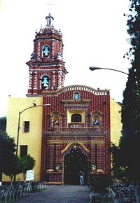 On Sunday morning we were invited for breakfast by Aida's mother. We had the typical "tamales", fruit, hot chocolate and "dead bread", usually served on All Saints' Day, November 1st. In the afternoon the bus took us to the nearby town of Cholula. The pyramid there is Mexico's largest pyramidal structure. From a distance it appears to be a large hill with a colonial church at its summit. The still active volcano Popocatepetl can be seen in the distance. The tunnels in the pyramid's interior can be visited, which we did. Afterwards we went to see the church of Tonantzintla, a masterpiece of Mexican baroque. We had an early dinner at VIPS in Puebla and visited the artisan market El Parian. The evening was finished off with a drink at the bar of the Hotel Royalty on the Zócalo (main square).