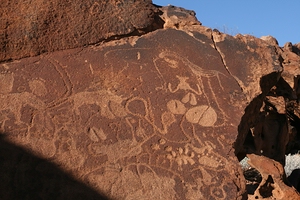 ganze Reihe von Felszeichnungen zu sehen, teils gut, teils weniger gut