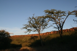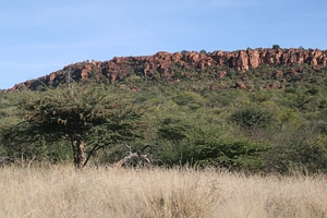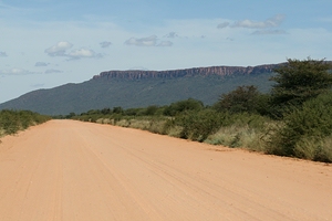 Waterberg ab. Noch etwa 70 Kilometer auf guter Schotterpiste. Um 13.15