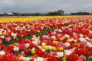 Am Karfreitag sind wir nach Südholland gefahren. Auf der Hinfahrt haben wir für die 250 Kilometer recht lange gebraucht, da stellenweise noch einiges an Stau war. Das Wetter war während der Fahrt recht schön mit viel Sonne. Doch gegen Mittag zog es sich zu mit ein paar Schauern. Gegen 14 Uhr waren wir erst am Ziel in Noordwijkerhout an der holländischen Küste. Von dort sind wir dann mit den Fahrrädern mehr oder weniger die Dünen- und Blütenstrecke (grob übersetzt für die Duin- en Bollenstreek) gefahren. D.h. unsere Route führte durchs Zentrum des netten Örtchens und dann an einigen Tulpenfeldern entlang, die herrlich blüten, am berühmten Keukenhof vorbei, den wir allerdings nicht besucht haben, dann noch an einem See entlang, wo wir uns in einem Café Appelgebak und Kaffee gönnten, und anschließend durch die Dünen mit einem Abstecher zum Strand wieder zurück. Nach insgesamt 23 Kilometern waren wir gegen 17 Uhr wieder am Auto. Mit dem Wetter hatten wir noch Glück. Nach einem anfänglichen Regenschauer kam bald wieder die Sonne raus, und als wir dann an den Blumenfeldern vorbeifuhren, leuchtete alles wunderbar. Erst als wir am Strand waren, drohten wieder dunkle Wolken, und für den Rest des Abends war es dann bewölkt. Insgesamt war es recht frisch, um die 13 °C.