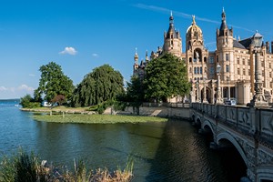 immer am Seeufer entlang mit tollem Blick auf das Schweriner Schloss