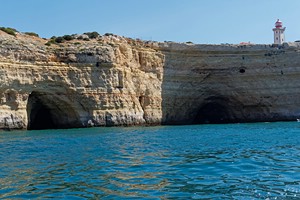 bei der Brandung! Die Bootsfahrt geht erst Richtung Carvoeiro, und