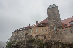 nach Stolpen. Vom Elbtal geht es bergauf. Wir fahren in die Wolken