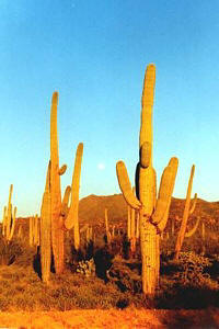 The following day we went to Tombstone, a quite original western town, site of the O.K. Corral Shoot-out with Wyatt Earp (the Tombstone Boothill Graveyard was interesting; with someone hanged by mistake) and to Nogales. Here we crossed the border to Mexico for about an hour. We had to leave the car on the US-American side as the rental company didn't allow to take it across the border due to insurance reasons. In spite of Nogales being a border town and therefore probably not typically Mexican it was interesting to get to see a bit of Mexico. The fortifications at the border, big fences to prevent people from entering the United States illegally were quite impressive. After our return we visited San Xavier Mission as well as Saguaro National Monument (west) where many of these cacti can be found. Once more we spent the night in Tucson.