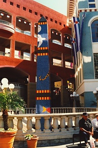 On Monday, April 1, we drove once more along the Salton Sea and headed for the coast. After 160 miles we arrived at La Jolla, an affluent ocean town north of San Diego. Here we spent three nights. We had a suite with kitchenette and a balcony with seaview at La Jolla Cove Motel. The following two days we drove about 50 miles per day only, just visiting San Diego, its pretty historic Gaslamp Quarter, the new shopping center Horton Plaza, the Embarcadero dock and the Hotel del Coronado where "Some like it hot" was filmed. The sunsets behind the palm trees at La Jolla were beautiful. Close by were rocks with sea lions and pelicans.