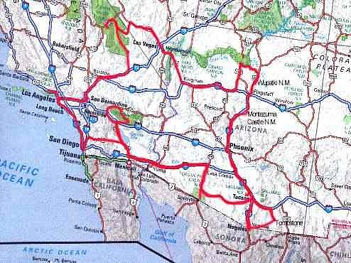 Wednesday, March 27, got us to Phoenix, which is quite an uninteresting town, and its posher part Scottsdale. We also went to see Casa Grande Ruins National Monument, an ancient Indian habitation, and spent the night in Tucson (Wayward Winds Lodge).