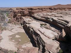 flott voran. Man quert oder durchläuft einen großen Wash, bevor es zur Brücke
