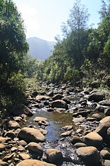 dann wieder rechts in die Menehune Road bis zur Hängebrücke am Menehune Ditch.