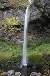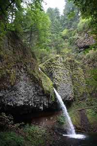 Upper Horsetail Falls) weiterläuft. Der Trail führt in der Basaltwand