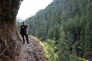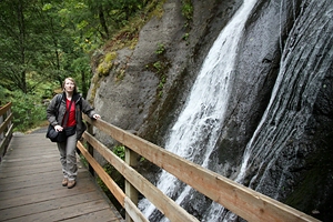hinter dem Wasserfall vorbei. Bald darauf erwischt uns recht heftiger