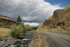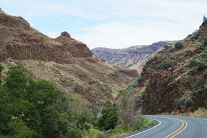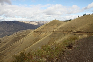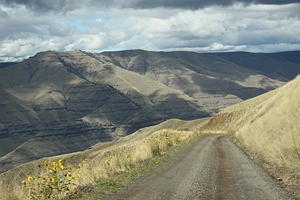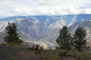 Das Wetter sah heute wieder wesentlich besser aus als erwartet! Also verlängerten wir unser Zimmer noch um eine Nacht. Zum Frühstück gingen wir in die Cloud 9 Bakery schräg gegenüber. Leider gab’s dort nur eklig süße Teilchen und auch nur einen einfachen Kaffee. Um 8.30 Uhr waren wir startklar. Eine Stunde brauchten wir für die Strecke nach Imnaha, landschaftlich sehr nett, und man kommt an ein paar schönen alten Scheunen vorbei. Von Imnaha aus ging es auf die Gravel Road zum Hat Point, eine Stichstraße von 24 Meilen. Die einspurige Straße war in gutem Zustand. An manchen Stellen, insbesondere auf dem ersten Stück, ging es ohne Abgrenzung steil nach unten. In Serpentinen geht es hoch zum 5-Mile Viewpoint, dann kommt ein Abschnitt durch den Wald, man kann noch mal am Horsepoint Viewpoint halten und am Granny Viewpoint mit Blick auf den Imnaha Canyon.