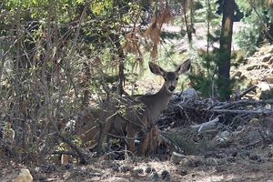Gegen 13 Uhr machen wir Lunch an den Picknicktischen am Smith Creek Viewpoint, kurz vor dem Ende der Straße an der Windy Ridge. Es ist ziemlich kühl hier oben. An der Windy Ridge sehen wir einige Wapitis in der Ferne am Hang, und wir steigen die vielen Treppen zum oberen Aussichtspunkt hoch. Von hier hat man wirklich einen tollen Blick auf den Krater des Mount St. Helens (alternativ kann man den Park auch von der Westseite anfahren, es gibt aber keine direkte Verbindung zur Ostseite, an der wir uns befinden). In einem Loop fahren wir über den Highway 26 zurück Richtung Packwood. Dies ist eine einspurige Straße mit einigen Schlaglöchern. Auf der Hinfahrt war sie nicht ausgeschildert. Um 15 Uhr sind wir wieder auf dem Highway 25. Da es noch früh ist, laufen wir noch den Woods Creek Loop und Old Growth Loop von 2,5 Meilen durch den bemoosten Wald. Wir sehen ein paar kleine Frösche und Banana Slugs, leider keinen Biber, die es auch hier geben soll. Insgesamt brauchen wir eine knappe Stunde. Gegen 16.45 Uhr sind wir wieder am Motel.