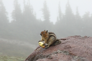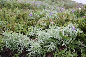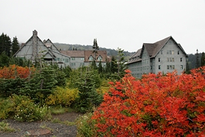 Abreisetag! Das Wetter sah heute schon wieder besser aus. Da stand dann noch die Sunrise Area des Mount Rainiers auf dem Programm. Gegen 9 Uhr fuhren wir los. Auf dem Highway 123 ging es nach Norden und über den White River Entrance wieder in den Nationalpark. In Kehren ging es auf der Nordostseite den Berg hinauf, und auch wenn die Spitze weiterhin in den Wolken lag, so hatte man doch Blick auf die unteren Hänge der Gletscher, und auch den Mount Adams konnte man in der Ferne sehen. Gegen 10 Uhr erreichten wir den Parkplatz am Sunrise Visitor Center. Hier vertraten wir uns noch für etwa eine halbe Stunde die Beine.
