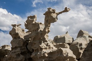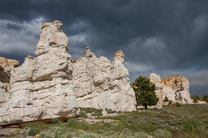 Dienstag, 10.6. Gooseberry Badlands, Paul Bunyan Marbles, Hot Springs State Park Thermopolis, Castle Gardens bei Riverton Wetter: vormittags sonnig, nachmittags bewölkt, 31 °C Wir frühstücken auf unserem Zimmer mit Cornflakes, Bananen und Joghurt. Kaffee gibt’s von der Rezeption. Um kurz vor halb 8 fahren wir auf dem Highway 120 durch grüne Hügellandschaften nach Süden bis zum Abzweig zum Highway 431. Nach ein paar Meilen erreicht man den Parkplatz an den Gooseberry Badlands, der als Scenic Area ausgeschildert ist. Hier startet ein Rundweg von einer Meile. Die verschiedenen Formationen und Hoodoos bieten jetzt im Morgenlicht einen schönen Anblick. Eine halbe Stunde brauchen wir für den Trail, und um 9.15 Uhr fahren wir weiter. Auf dem Rückweg zum Highway 120 steht plötzlich eine Herde Pronghorn-Antilopen auf der Straße. Doch die Tiere sind sehr scheu und schnell wieder verschwunden. Südlich der Little Sand Draw Road erreichen wir unser nächstes Ziel: die Paul Bunyan Marbles. Zunächst muss man ein Gatter öffnen (und natürlich wieder schließen). Dann geht es noch eine Meile über eine leicht sandige Fahrspur, die allerdings in der Mitte ziemlich hoch mit Gras bewachsen ist. Wir lassen das Auto daher lieber stehen und laufen den restlichen Kilometer zu Fuß. Nach einer Viertelstunde stehen wir vor den Riesenmurmeln. Wir laufen eine Weile durch das kleine Gebiet und sind nach insgesamt einer Dreiviertelstunde wieder zurück am Auto. Es ist 10.45 Uhr. Eine halbe Stunde später erreichen wir den Ort Thermopolis und den Hot Springs State Park am Bighorn River, der sehr nett als Parkanlage angelegt ist. Im State Bath kann man kostenlos im heißen Thermalwasser baden. Nach einer halben Stunde mit Umziehen sind wir allerdings wieder draußen, da man es nicht allzu lange im ca. 40 °C heißen Wasser aushält. Immerhin haben wir als Außentemperatur heute auch schon 31 °C. Wir machen noch ein Picknicklunch im Park und laufen den kurzen Boardwalk über die Sinterterrassen, die allerdings ausgetrocknet sind. Der Zugang zur Hängebrücke ist wegen Bauarbeiten gesperrt. Wir fahren noch den Bison Drive, aber von der Büffelherde, die es hier geben soll, ist nichts zu sehen. Um 12.30 Uhr fahren wir weiter. Es geht weiter nach Süden. Die Route führt durch den Wind River Canyon, was eine sehr schöne Strecke ist. Dann geht es ein Stück am Boysen Reservoir entlang, aber die Landschaft ist hier eher trostlos. Um 13.45 Uhr erreichen wir Riverton, wo wir das Days Inn reserviert haben. Das Hotel ist allerdings eine Baustelle. Offenbar entsteht gerade ein Anbau. Aber wir können trotzdem einchecken. Für $64 gibt es ein großes Zimmer mit zwei Queen-Betten, Kühlschrank, Mikrowelle, Flachbildschirmfernseher und free WiFi. Mit einem Milkshake von Dairy Queen machen wir uns um 15.15 Uhr auf den Weg zu den Castle Gardens östlich von Riverton. Auf dem Highway 136 fahren wir 35 Meilen bis zur Castle Gardens Road, die ausgeschildert ist. Die Straße ist ungeteert aber gut zu fahren. Sechs Meilen sind es bis zum nächsten Abzweig, dann noch einmal fünf Meilen. Unterwegs sehen wir ein paar Pronghorns. Schließlich muss man ein Gatter öffnen und wieder schließen, dann ist es noch etwa eine halbe Meile bis zum einem Wendekreis, an dem man parken kann. Hier startet ein offizieller Trail in die Badlands. Dafür benötigt man etwa eine halbe Stunde. Wir haben schönes Licht, denn die Sonne scheint, und im Hintergrund drohen Gewitterwolken. Felszeichnungen sind auch zu sehen. Eine Stunde dauert die Fahrt zurück nach Riverton. Um kurz nach 18.30 Uhr sind wir wieder am Hotel. Zum Abendessen gibt es heute nur einen Salat vom Subway gegenüber. Gefahrene Meilen: 265