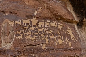 Samstag, 14.6. Nine Mile Canyon, Sego Canyon und Corona Arch Wetter: vormittags bewölkt bei 12 °C, mittags sonnig bei 23 °C, nachmittags sonnig bei 30 °C Nach dem Frühstück im Best Western (heute gibt es Biscuits und Gravy sowie Rührei statt Breakfast Burrito ansonsten das übliche) machen wir uns um 8.15 Uhr auf den Weg. Hinter Myton verlassen wir den Highway 40 bzw. 191 Richtung Nine Mile Canyon, der zum BLM gehört. Es sind noch mal über 30 Meilen, bis wir den Gate Canyon erreichen. Die kurze Strecke durch den Canyon war das einzige Teilstück, das noch nicht geteert ist. Am Ende des Canyons fahren wir nach links Richtung Cottonwood Canyon. Es ist 10 Uhr. Nach ein paar Meilen halten wir am Daddy Canyon Complex und sehen unsere ersten Petroglyphen des Tages an den Felsen neben dem Parkplatz. Dann fahren wir noch ein Stück weiter bis zur Big Buffalo Site (ein kurzer Trail führt zur gegenüberliegenden Felswand) und zum Highlight des Nine Mile Canyons, dem Great Hunt Panel oder Hunter Panel. Hier machen wir kehrt. Es ist 11.20 Uhr, und die Sonne kommt nun raus. Zurück an der Kreuzung geht es nun in den eigentlichen Nine Mile Canyon. Wir halten an mehreren Felszeichnungen und Ghost Towns (Nutter`s Ranch, Harper) sowie einem Balanced Rock entlang der Straße. Um 12.30 Uhr erreichen wir die Picnic Area des Canyons und machen erst mal Pause. Die Sonne scheint und es weht ein kühler starker Wind bei 23 °C. Danach ist es nicht mehr weit bis zum First Major Panel (demnach sind wir die Strecke eigentlich falsch rum gefahren), und wir verlassen den interessanten Teil des Canyons. Insgesamt war hier sehr wenig los, so dass man in Ruhe überall anhalten konnte. Um 13.40 Uhr erreichen wir südlich von Price wieder den Highway 191. Nach 50 Minuten sind wir in Green River in Utah. Hier haben wir 30 °C. Mit einem Kaffee vom örtlichen Coffee Shop machen wir uns auf die Weiterfahrt über die I-70. Fünf Meilen hinter dem Abzweig nach Moab erreichen wir den Ort Thompson Springs am Exit 187. Hinter dem Ort kommt man in den Sego Canyon, der für seine indianischen Felszeichnungen bekannt ist. Kurz vor dem Parkplatz an den Pictographs endet die Teerstraße. Es gibt drei Panels mehr oder weniger nebeneinander, die sehr sehenswert sind. Es ist 15.30 Uhr. Wir fahren noch ein Stück weiter. Unweit der ausgeschilderten Panels gibt es noch ein äußerst interessantes Panel auf der rechten Straßenseite in einem Corral mit sehr großen Figuren. Dieses befindet sich jedoch auf Privatland. Kurz dahinter geht rechts eine unmarkierte Straße ab in den eigentlichen Sego Canyon. Nach etwa einer Meile erreicht man eine Ghost Town. Auf dem Rückweg gabelt sich dann die Straße. Fährt man rechts kommt man am alten Friedhof vorbei. Wir fahren zurück auf die I-70 und den Highway 191, diesmal Richtung Moab. Kurz vor Moab biegen wir auf die Potash Road ein. Um 17 Uhr starten wir auf dem Trail zum Corona Arch. Diesen sind wir bereits 2006 gelaufen, doch das Wetter war trübe. Diesmal scheint die Sonne vom blauen Himmel und die Felsen leuchten. Die 1,5 Meilen gehen größtenteils bergauf, meist über Slickrock. An einer Stelle muss man sich über Stufen an einem Seil hochhangeln, und dann geht es noch über eine kleine Metallleiter einen Felsabsatz hoch. Nach 30 Minuten haben wir es geschafft. Der wunderschöne und auch in seiner Größe imposante Arch liegt in all seiner Pracht vor uns, und es sind keine anderen Touristen dort! Das heißt noch nicht – denn auf einmal fällt ein Seil von oben herab und jemand lässt sich daran hinunter! Bald darauf kommen dann auch wieder die nächsten Touristen. Wir machen uns dann bald wieder auf den Rückweg und sind um 18.30 Uhr wieder am Auto. In Moab sind wir um 19 Uhr und gehen noch kurz im City Market einkaufen. Dann checken wir im Rustic Inn Motel für $90 pro Nacht plus Tax für vier Nächte ein. Wir haben ein großes Zimmer mit zwei Queen-Betten, Küchenzeile ohne Herd, Mikrowelle, großem Kühlschrank, Kaffeemaschine, free WiFi, Standard-Fernseher. Für Moab ist es ziemlich preiswert, und es liegt zentral mitten im Ort. Zum Abendessen gehen wir ins Eddie McStiff's. Für einen Burrito und Fish & Chips, 1 Bier und eine Mango Colada zahlen wir $36 plus Tax. Die Portionen waren nicht riesig, aber das Essen war gut. Am Samstagabend hatten wir Glück noch einen freien Tisch draußen zu bekommen. Dazu spielte eine Live-Band. Anschließend trafen wir uns mit Silke aus dem DA-Forum, die im gleichen Motel abgestiegen ist, auf ein Bier bzw. einen Cider. Gefahrene Meilen: 279