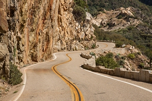 schlängelt sich als achtspuriger Highway durch die Berge. Um 6.20