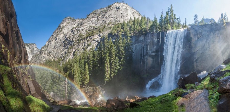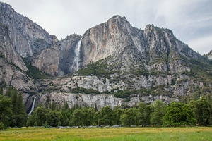hohen Wasserfall, der sehr schön die Felswand hinunterfließt. Bis