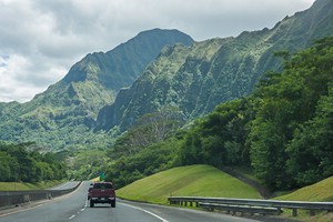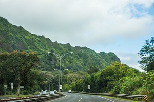 Pali Highway nach Honolulu. Der morgendliche Stau ist um diese Zeit