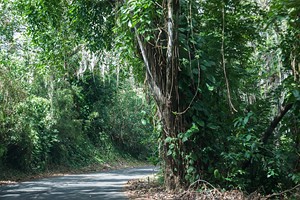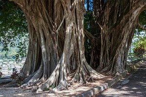 Urwaldvegetation und kommt auch an ein paar riesigen Banyanbäumen vorbei.
