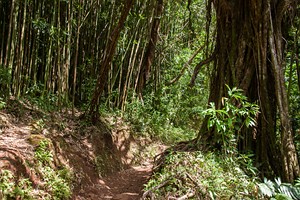Bambuswald und an einen Abzweig zum Pauoa Flats Trail. Hier laufen wir