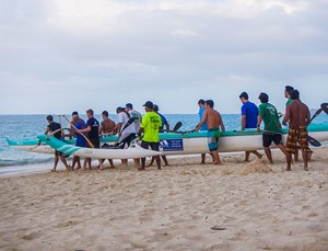 ist wieder mit seinen Outrigger-Kanus unterwegs. Zum Abendessen machen