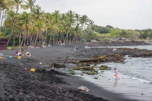 Punalu‘u Black Sand Beach. Hier hatten wir auch auf unserer ersten