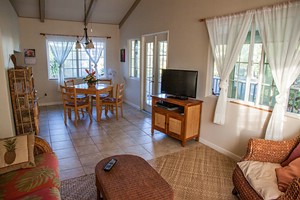 Wohnzimmer mit Sofaecke, Flachbildschirm-TV, WiFi, Essecke, Küchenzeile