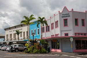 Schatten liegen. Als wir ins Historic Center von Hilo fahren, scheint