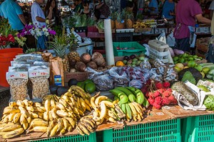 stattfindet. Hier kaufen wir Strawberry Papayas und Apple Bananas. Dann