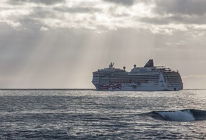 Getränken für $41 plus Trinkgeld. Vor der Stadt liegt das Kreuzfahrtschiff