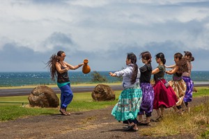 Hawaiianerinnen beim Hula-Tanz. Gegen 12.30 Uhr sind wir in Hawi und essen