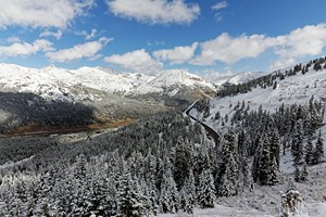 Dienstag, 26.9. Fahrt nach Leadville und über den Independence Pass nach Aspen Wetter: sonnig, 10 °C in Twin Lakes, 18 °C in Glenwood Springs Ab 6 Uhr gibt es Frühstück im Hotel, und für ein amerikanisches Hotelfrühstück ist es gar nicht mal übel. Es gibt Omeletts, Hashbrowns, kleine Fleischpatties, Waffeln zum Selberbacken, Toast, süße Teilchen, Obst, Joghurt usw. Wir nehmen uns Käseomeletts mit Hashbrowns und essen dazu Toast und Joghurt. Um 8 Uhr machen wir uns schließlich auf den Weg zurück auf der I-70 Richtung Osten. Nach einer Stunde Fahrt geht es vor Vail auf den Top of the Rockies Scenic Byway nach Leadville. Die Straße führt entlang des Arkansas Rivers und über den Tennessee Pass ins 3200 Meter hoch gelegene Leadville, eine alte Minenstadt, in der noch viele historische Gebäude zu sehen sind. Inklusive einiger Fotostops sind wir um 10.15 Uhr dort. Im Safeway lassen wir uns ein großes Roastbeefsandwich zum Teilen machen, dann laufen wir ein wenig durch die Stadt und nehmen uns einen Kaffee mit. Um 11 Uhr geht es weiter. Bei Twin Lakes biegt der Scenig Byway Richtung Aspen ab. Wir sehen einen Fischadler, der einen großen, zappelnden Fisch zwischen den Krallen hält. Dann halten wir am Aussichtspunkt über den Seen und machen am Twin Lakes Historical District, wo noch ein paar alte Gebäude stehen, ein Picknick. Hier haben wir 10 °C, aber in der Sonne ist es angenehm warm. Kurz vor 13 Uhr erreichen wir die höchste Stelle auf dem Independence Pass. Hier oben auf 12095 Fuß (3687 Metern) befindet sich die Kontinentalscheide, und man merkt beim Bergauflaufen wieder die Höhe. Es geht ein kurzes Stück zu einer kleinen Aussichtsplattform mit Blicken auf mehrere 14.000er einschließlich des Mount Elberts, des höchsten Gipfels in Colorado. Bald darauf erreichen wir die Grottos Day Use Area und starten um 13.30 Uhr auf dem Grottos Trail zu einer Eishöhle und einem Wasserfall am Roaring Fork River. Nach 30 Minuten auf dem Rundweg sind wir wieder am Auto. Um 14.10 Uhr sind wir am Trailhead zum Weller Lake eine Meile weiter westlich. Für den einen Kilometer bergauf brauchen wir knapp 20 Minuten. Der Blick auf den See umrahmt von hohen Bergen ist toll. Am Vormittag wären allerdings die Lichtverhältnisse besser. Für den Rückweg bergab brauchen wir 10 Minuten. Gegen 15 Uhr geht es weiter. Die Passstraße verengt sich nun abschnittsweise, aber bald erreichen wir den Skiort Aspen. Am Kreisverkehr, wo auch die Straße zu den Maroon Bells abgeht, nehmen wir diesmal die Straße nach Ashcroft. 10 Meilen sind es noch bis zu der Ghost Town. $5 Eintritt sollen fällig werden, aber das Welcome Center ist geschlossen. Trotzdem kann man über das Gelände laufen. Die alten Gebäude liegen zwischen gelben Espen, was sehr schön aussieht. 20 Minuten später fahren wir noch bis zum Ende der Straße, wo wir mit einem tollen Blick auf hohe Berge mit gelben Espen im Vordergrund belohnt werden. Hier sind gerade viele Fotografen unterwegs, die mit geschultertem Stativ noch die Dirt Road am Ende der Teerstraße weiterlaufen. (Was gibt’s dort wohl zu fotografieren??) Einige Allradfahrzeuge fahren die Strecke einfach. Wir machen uns jedoch auf die Rückfahrt und sehen noch ein paar Rehe entlang der Straße. Nach einer Stunde Fahrt erreichen wir kurz nach 17.30 Uhr wieder Glenwood Springs und stehen wieder im Stau. Es sind 18 °C. Zum Abendessen gehen wir in das Glenwood Canyon Brewpub direkt an der Brücke im Zentrum und essen Pork Ribs mit Fries bzw. Shredded Beef Tacos mit Reis. Weil wir noch fahren müssen, verzichten wir auf Alkohol. Zusammen mit einem Tonic Water und einem Iced Tea zahlen wir $40 plus Tip. Um 19 Uhr sind wir wieder am Hotel. Gefahrene Meilen (laut Tacho): 223 (laut Google Maps müssten es eigentlich ca. 348 sein, komisch…) Übernachtung: Quality Inn & Suites On the River, Glenwood Springs ($84 + Tax)