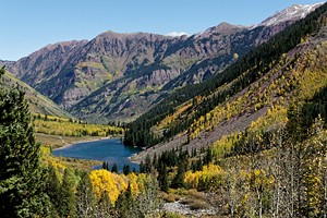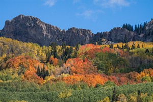 Donnerstag, 28.9. Fahrt nach Marble und über den Kebler Pass Wetter: vormittags meist sonnig, nachmittags bewölkt mit Regenschauern, 4 °C in Marble, 9 °C in Crested Butte, 19 °C in Delta Zum Frühstück gibt es diesmal wieder Hashbrowns mit Omelett und Toast. Nach dem Checkout um 7.15 Uhr fahren wir noch zum Safeway, wo wir uns Sandwiches zum Mitnehmen holen, und tanken. Wir fahren wieder Richtung Aspen, wo dunkle Wolken drohen, biegen aber bei Carbondale auf den West Elk Loop Scenic Byway ab. Richtung Westen winkt blauer Himmel. Schließlich biegen wir nach Marble ab. Im Tal hängen Nebelschwaden. Das sieht mit den gelben Espen und blauem Himmel toll aus. Die Straße endet am Beaver Lake, wo sich gerade der Morgennebel verzieht. Wir haben 9 Uhr. Wir hatten überlegt, eventuell die Fahrt zur Crystal Mill Mine zu machen oder die Strecke zu Fuß zu laufen. Aber dann hätten wir das wegen des Fotolichts am Nachmittag machen wollen und noch einen Tag mehr mit wirklich gutem Wetter haben müssen. Unserem Auto wollten wir die Strecke jedenfalls nicht zumuten. Wir fahren zurück zum Highway 133 und folgen diesem über den McClure Pass, von dem man auch tolle Ausblicke auf die umliegenden Berge hat. Hinter dem Paonia Reservoir biegen wir um 10 Uhr auf den Highway 12 nach Crested Butte ab. Die 30 Meilen lange Straße über den Kebler Pass ist eine breite Piste aus festem Lehm. Die schattigen Stellen sind noch feucht, aber auch PKWs sind heute hier unterwegs. Je höher wir kommen, umso mehr fährt man durch ganze Wälder von gelb leuchtenden Espen. Im Hintergrund sieht man zum Teil schneebedeckte Berge. Um 11.20 Uhr erreichen wir Crested Butte, ein sehr hübscher Ort mit vielen schönen alten Häusern. Wir stoppen auf einen Kaffee und laufen kurz durch die Hauptstraße. Hier oben haben wir 9 °C. Um 12 Uhr machen wir uns auf die Rückfahrt. Mittlerweile zieht es sich zu, wir machen noch eine Picknickpause mit Blick auf die Berge, und verzehren unsere am Morgen gekauften Sandwiches. Um 13.45 Uhr sind wir wieder auf der Teerstraße nach Delta. Aufgrund der dunklen Wolken im Süden und der schon fortgeschrittenen Uhrzeit fahren wir nicht mehr zum North Rim des Grand Canyon of the Gunnison. Die Südseite haben wir bereits 2008 besucht. In Delta halten wir noch bei Dairy Queen. Hier haben wir 19 °C. Von der Straße Richtung Grand Junction machen wir noch einen Abstecher auf die leicht steinige Dirt Road zum Escalante Canyon, 15 Meilen nördlich von Delta. Diese kann man 17 Meilen bis zu einer Furt fahren, aber wir kehren bereits nach 8 Meilen wieder um. Jetzt drohen im Westen dunkle Regenwolken. Diese holen uns dann auf dem Highway schließlich ein. Um 16.30 Uhr erreichen wir das Ramada Inn am Horizon Drive in der Nähe des Flughafens von Grand Junction. Wir beziehen für drei Nächte ein großes Zimmer mit zwei Queen-Betten, Kühlschrank, Mikrowelle, Kaffeemaschine, großem Flatscreen-Fernseher für $80 (nachträglich gebucht) bzw. $69 (mit Free Meeting Space Rabatt) pro Nacht. Die Wände in den Fluren und Zimmern scheinen alle neu gestrichen, doch der Teppich ist noch alt. Außerdem sind die Kopfkissen zu hart, ansonsten haben wir nichts zu meckern. Anschließend fahren wir noch zur Mesa Mall und gehen ein bisschen shoppen. Neben der Mall befindet sich ein Famous Dave's Bar-B-Que Restaurant, wo wir zum Abendessen einkehren. Ich nehme das Georgia slow-smoked Chopped Pork mit Mashed Potatoes und Green Beans und Volker die Spare Ribs mit Potato Salad und Coleslaw. Zusammen mit zwei Soft Drinks zahlen wir $35 plus Tip. Die Portionen insbesondere die Beilagen sind nicht sehr groß, aber das Fleisch ist sehr lecker. Gefahrene Meilen: 251 Übernachtung: Ramada Inn, Grand Junction ($80 + Tax)