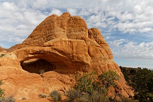 Freitag, 29.9. La Boca Arch, Covert Arch und Fisher Towers Wetter: zunächst Schleierwolken, ab mittags sonnig, 23 °C Zum Frühstück gibt es Rührei mit Toast, einen Joghurt und eine Banane. Man kann sich auch Waffeln backen. Beim Safeway lassen wir uns noch Sandwiches zum Mitnehmen machen. Diesen Tag Richtung Utah haben wir in die ursprüngliche Planung, in der es nur nach Colorado und New Mexico gehen sollte, eingeschoben, nachdem wir die beiden Übernachtungen am Anfang unserer Tour storniert hatten. Um 7.25 Uhr verlassen wir Grand Junction in leichtem Regen. Der ganze Himmel hängt voll dunkler Wolken. Auf der I-70 geht es nach Westen, und erst hinter der Grenze nach Utah wird das Wetter besser. Nach einer Stunde Fahrt erreichen wir den Exit 193 “Yellow Cat”. Wir folgen einer Beschreibung aus dem Internet und dem Navi und fahren nach Süden. Richtung Westen kann man den Arches National Park sehen. Die Dirt Roads sind bei trockenem Wetter normalerweise mit einem PKW befahrbar. Nach 45 Minuten parken wir oberhalb der Sandsteinformation, in der sich der La Boca Arch befindet. Es geht durch eine Lücke im Zaun keine 10 Minuten auf einer 4WD-Piste weiter, bis man sich direkt vor dem großen Felsbogen befindet. Dann laufen wir noch um die Sandsteinformation in nordöstlicher Richtung herum, und keine 10 Minuten später sieht man oben in den Felsen den Harold's Arch, zu dem man auch hinaufklettern kann. Allerdings mussten wir ihn trotz GPS-Koordinaten erst noch eine Weile suchen, und dann haben wir noch ein bisschen auf die Sonne gewartet, so dass wir erst nach gut einer Stunde wieder am Auto waren. Nun geht es ein Stück auf der Straße zurück, auf der wir gekommen waren, dann biegen wir Richtung Westen ab und nähern uns der Ostseite des Arches National Parks. Diese Straße ist zum Teil leicht sandig, und es gibt zwei Stellen, an denen man High Clearance benötigt. Auf dem Rückweg haben wir an einer Steinstufe einmal aufgesetzt. Wir parken schließlich vor einem Zaun mit einem Schild mit Informationen zu den Verhaltensregeln im Arches NP. Um 11 Uhr laufen wir los. Es geht noch ein Stück die Straße weiter, bis sie sich gabelt, wo wir den Abzweig nach rechts nehmen. Rechterhand des Wegs befindet sich eine Sandsteinklippe. Auf der Höhe von deren Ende schlägt man sich querfeldein Richtung Nordwesten. Man durchquert einen Wash und läuft dann möglichst auf Slickrockfelsen oder im Sand weiter, um nicht auf die empfindliche Vegetation zu treten. Nach 45 Minuten (3,2 Kilometern) stehen wir vor dem Lost Spring Canyon mit Blick auf den massigen Covert Arch in der Felswand gegenüber. Man könnte nun auch noch zum Arch hinabsteigen, aber das ist uns bei der abschüssigen Canyonwand doch etwas zu heikel. Nach einer kurzen Pause machen wir uns auf den Rückweg und sind um 12.45 Uhr wieder am Auto. Nun essen wir noch unsere Sandwiches und machen uns auf die Rückfahrt. Eine Stunde brauchen wir von hier, bis wir wieder auf der I-70 sind. Bis zur Abfahrt Cisco fahren wir zurück nach Osten. Nach weiteren 45 Minuten erreichen wir den Parkplatz an den Fisher Towers. Um kurz vor 15 Uhr starten wir auf dem 2,2 Meilen langen Trail, auf dem 670 Fuß an Höhe zu überwinden sind. Der Hin- und Rückweg ist mit 3-4 Stunden angegeben. Vor drei Jahren Mitte Juni haben wir die Wanderung nach der Hälfte mit Blick auf den Titan wegen 35 °C Hitze abgebrochen. Auch bei 23 °C und einer kühlen Brise wurde es uns heute schnell ziemlich warm auf dem Trail. Aber diesmal schaffen wir es bis zum Ende. Nach einer Stunde und 15 Minuten sind wir dort. Die Aussicht von der Felskante auf die Fisher Towers, hinab ins Castle Valley und auf den Onion Creek sind klasse. Die roten Felsen erstrahlen jetzt auch im besten Licht. Nach einer kurzen Pause laufen wir zurück und sind nach einer Stunde wieder am Auto. Um 17.30 Uhr machen wir uns auf die 1,5stündige Rückfahrt nach Grand Junction. Pünktlich zum Sonnenuntergang um 19 Uhr sind wir wieder am Hotel. Nach einer schnellen Dusche geht es ins nahegelegene Applebee`s zum Abendessen. Für mich gibt es Maccaroni-Cheese mit Bacon und Chicken und für Volker ein kleines Steak mit Mashed Potatoes und Brokkoli. Wir haben das Angebot für $25 für zwei inklusive einer Vorspeise genommen, wo wir uns für den Caesar Salad entschieden haben. Zusammen mit zwei Getränken zahlen wir $35 plus Trinkgeld. Gefahrene Meilen: 234 Übernachtung: Ramada Inn, Grand Junction ($69 mit Rabatt + Tax)